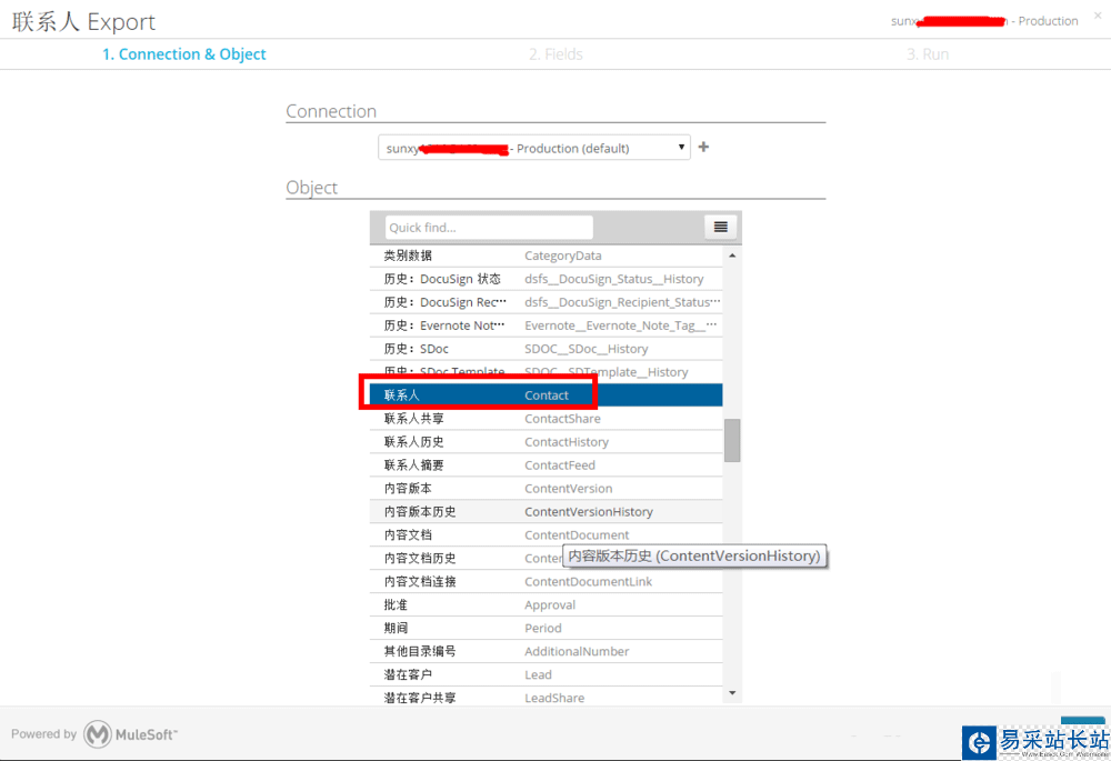 6、點擊導出,可以看到好像是salesforce中所有的數據都可以導出吧!ok,我們選擇聯系人點擊next