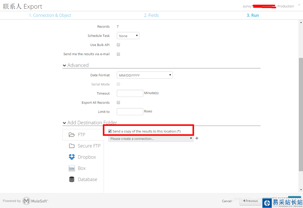 7、這里可以選擇我們需要導出的屬性,全選吧,再下一步,顯示導出的記錄信息。兩個高級,一個可以定義導出記錄中日期格式、記錄數和超時時長。另一個可以將導出文件備份到指定的目標服務器上。