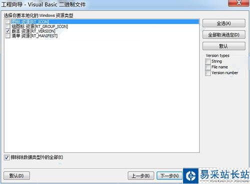 5、 在本地化的資源類型選擇項中,我們可以選擇一些最主要的對象進行漢化,當然也可以點擊全選按鈕,將所有的程序的資源類型全部打開;