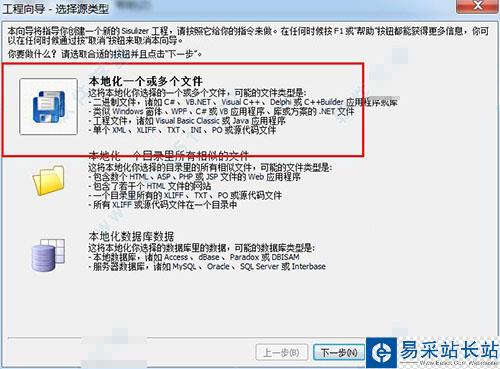 2、然后點擊第一個,也是默認選擇的,即本地化一個或者多個文件,這個也是漢化當中最經常用到的,選擇之后點擊下一步;