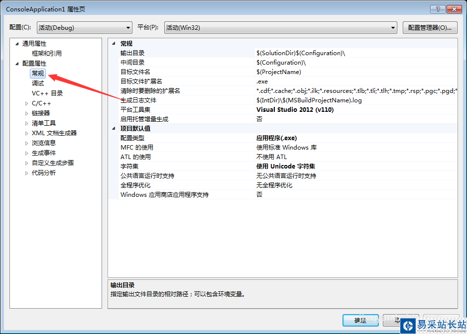 4、點擊配置屬性里面的常規(guī)選項。會出現(xiàn)右邊一些選項。