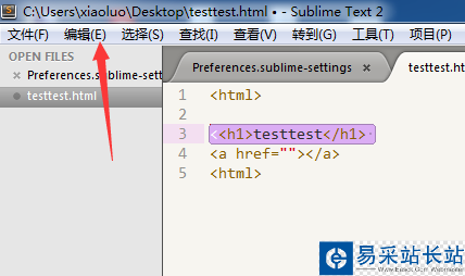3、代碼選中完成之后,進行點擊菜單中的“編輯“”的選項。
