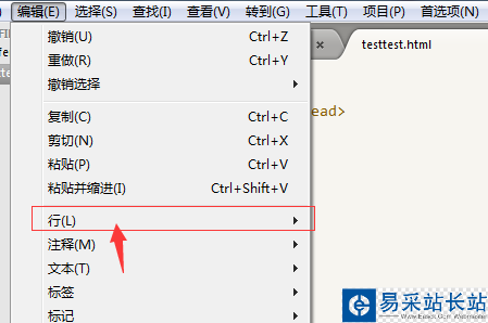 4、點(diǎn)擊了編輯菜單之后,彈出了下拉菜單中進(jìn)行選中為“行”的菜單。