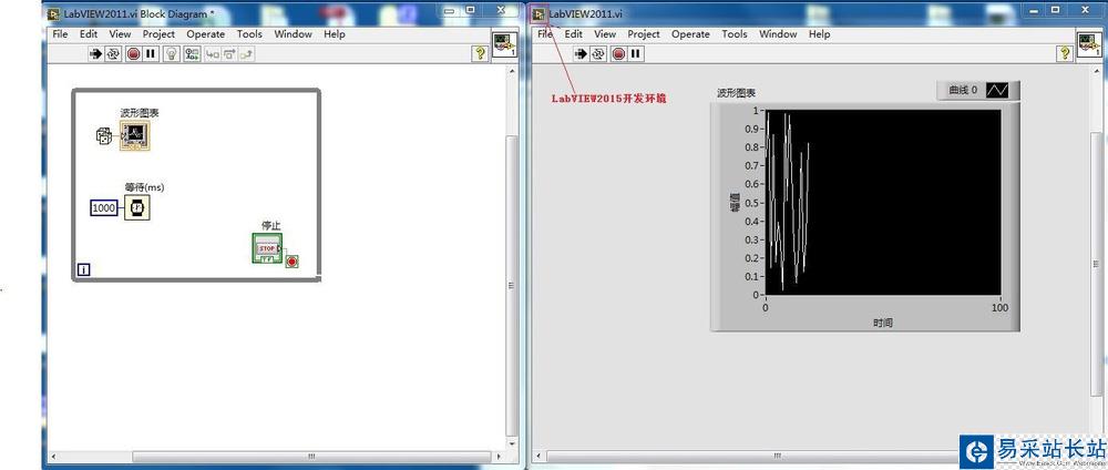 1、打開LabVIEW2011開發環境,新建一個VI,如下圖所示;