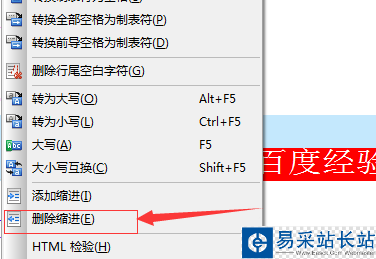 4、點擊了格式的菜單中之后,彈出了下拉菜單中,選中為“刪除縮進”的選項。
