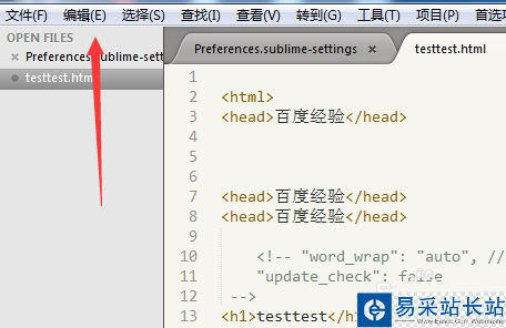 3、然后進行sublime Text點擊菜單中的“編輯”的選項菜單。