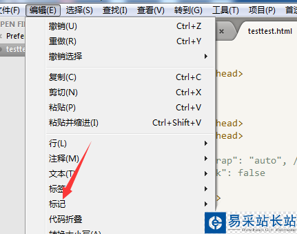4、點擊了編輯的菜單中,彈出了下拉菜單匯總,進行選中為“標記”。