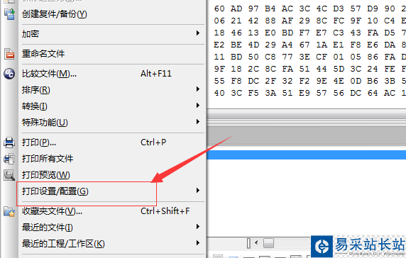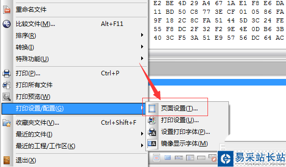 3、進(jìn)行點(diǎn)擊了文件的菜單之后,彈出了下拉菜單選中為打印設(shè)置/配置的選項(xiàng)。