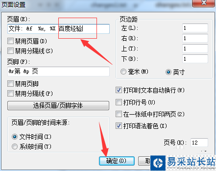 6、在頁眉的輸入框中輸入完成之后,然后進(jìn)行點(diǎn)擊 確定 按鈕。