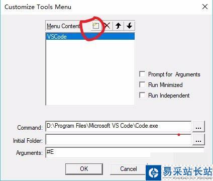 3、點(diǎn)擊如下圖所示的菜單上紅筆標(biāo)注的地方,給這個(gè)工具命名為vscode;