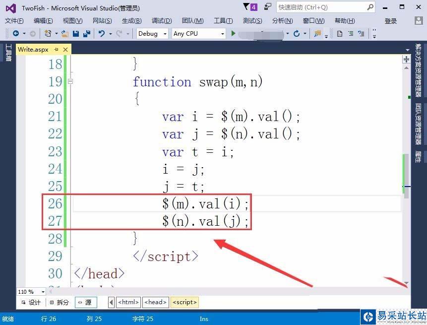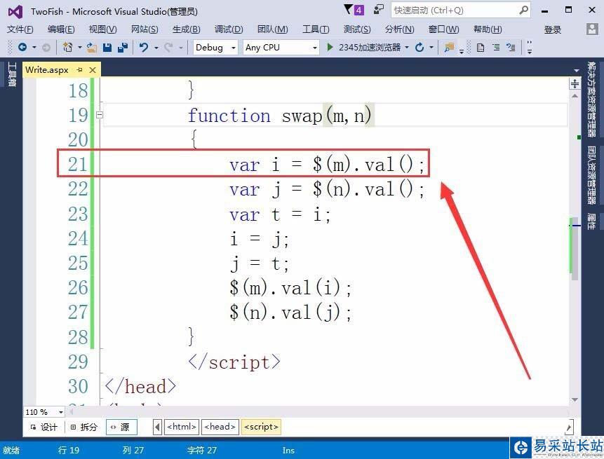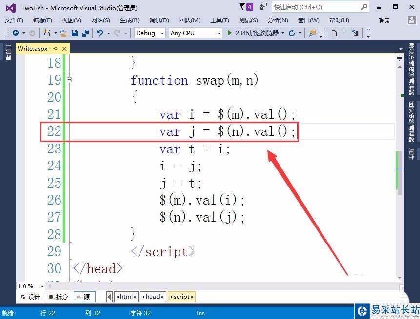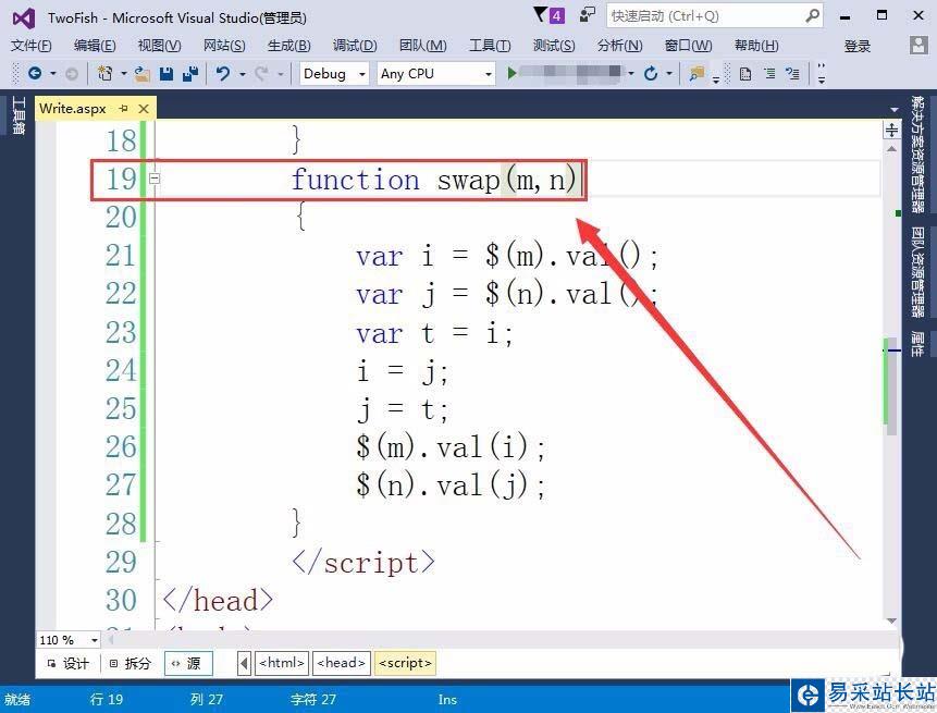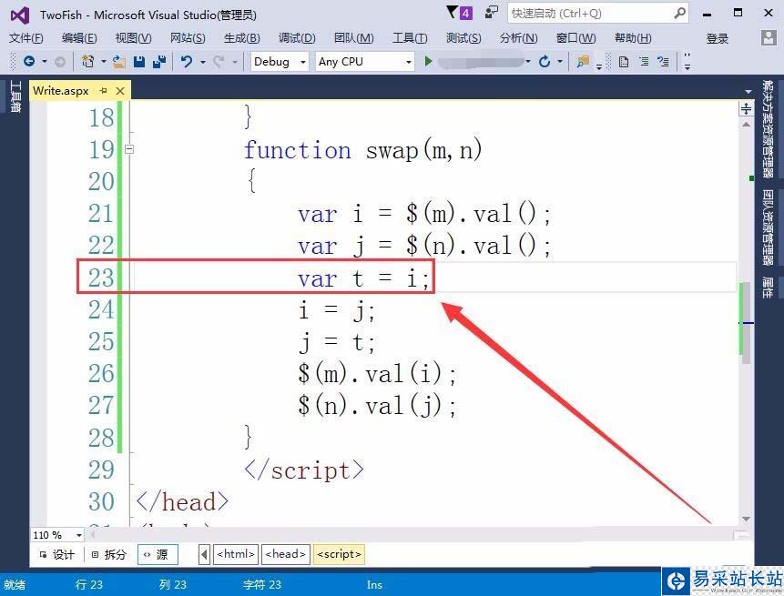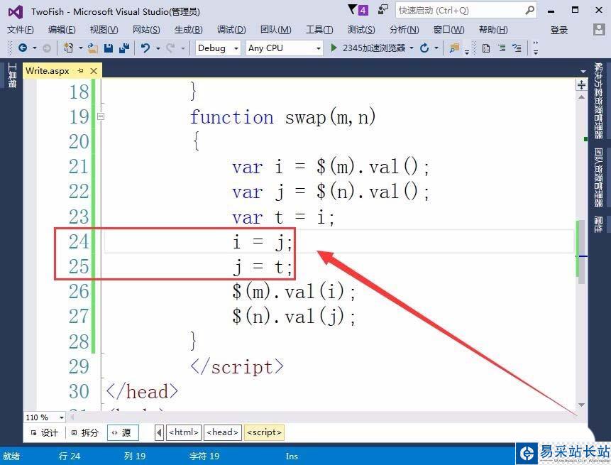 Visual Studio 2015如何在網(wǎng)頁中定義一個(gè)函數(shù),使它能實(shí)現(xiàn)兩個(gè)數(shù)的互換呢?下面我們就來看看詳細(xì)的教程。