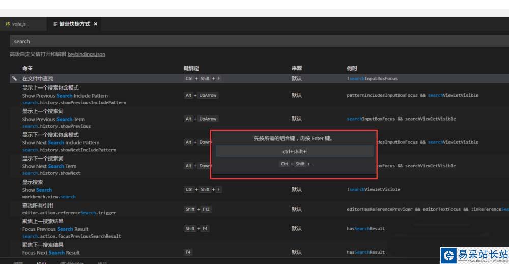 6、輸入search,按回車,第一個就是ctrl+shift+f,全局搜索