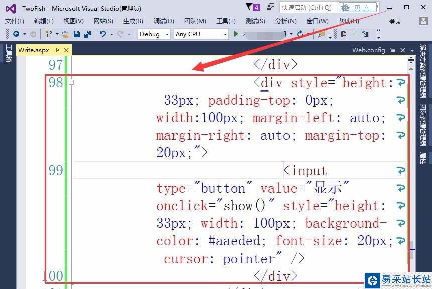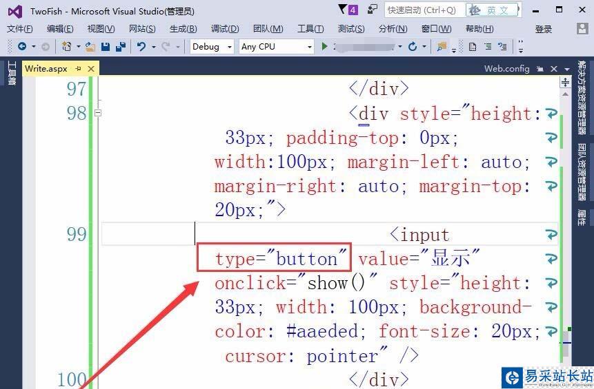 Visual Studio 2015中想在網(wǎng)頁(yè)中制作一個(gè)按鈕,單擊后就會(huì)在網(wǎng)頁(yè)中顯示文本,該怎么制作這個(gè)效果呢?下面我們就來(lái)看看詳細(xì)的教程。