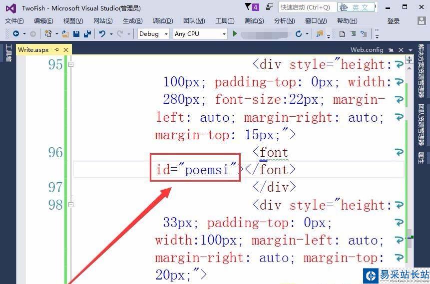 4、由于顯示的文本內(nèi)容是動(dòng)態(tài)控制的,所以設(shè)置一個(gè)標(biāo)識(shí)符poemsi,用來(lái)動(dòng)態(tài)表示顯示的詩(shī)句。