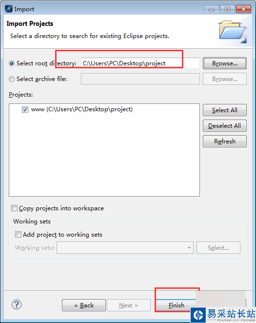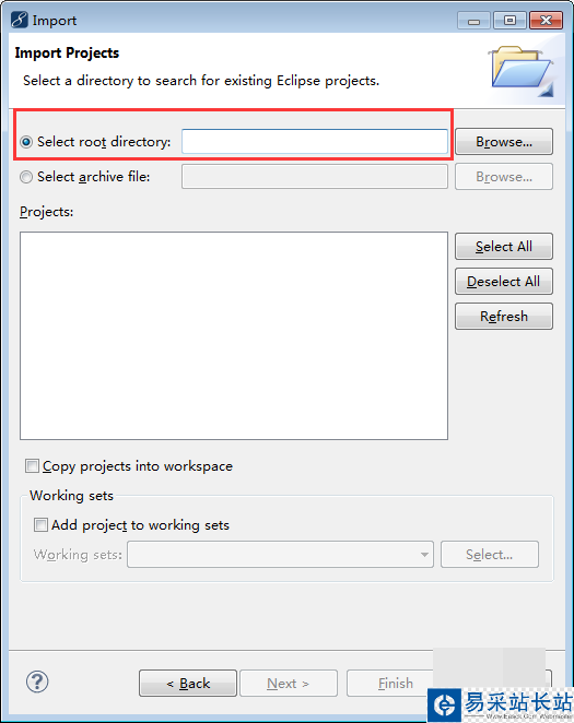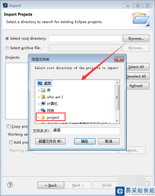 4、在彈出的二級窗體中,選擇Existing Projects into Workespace