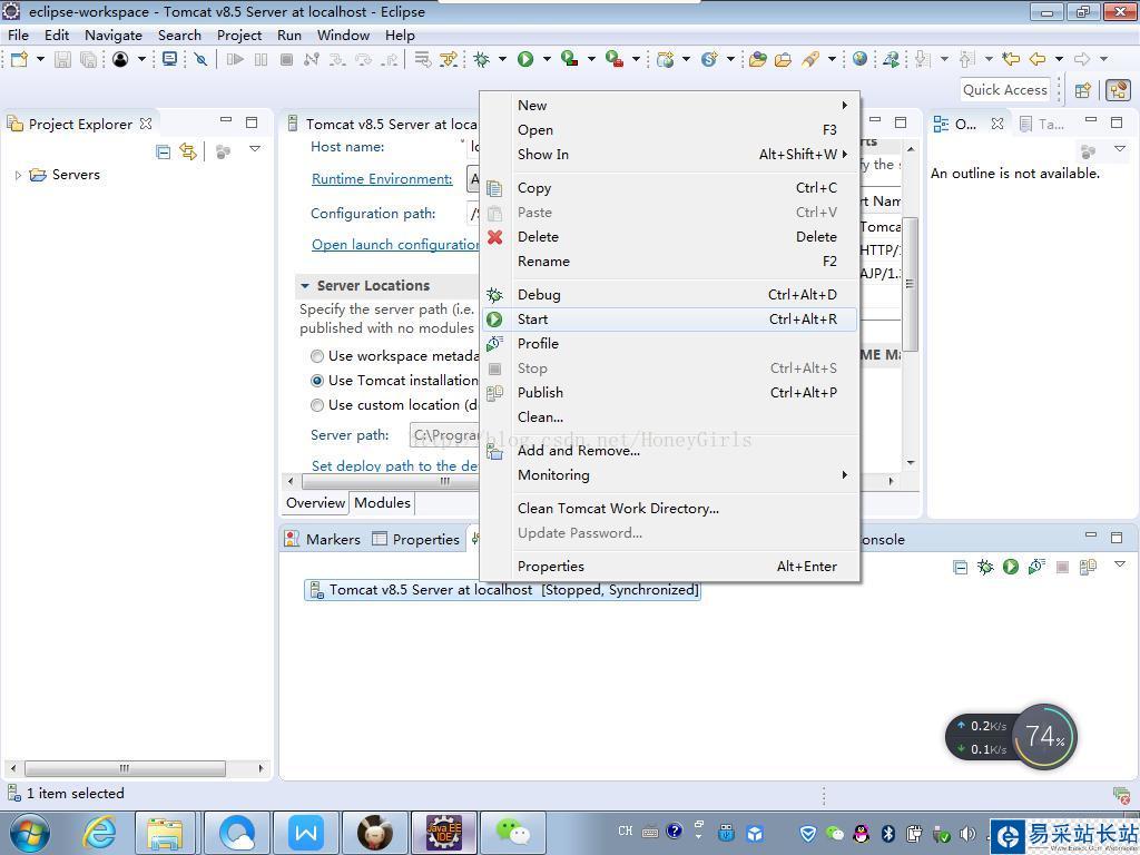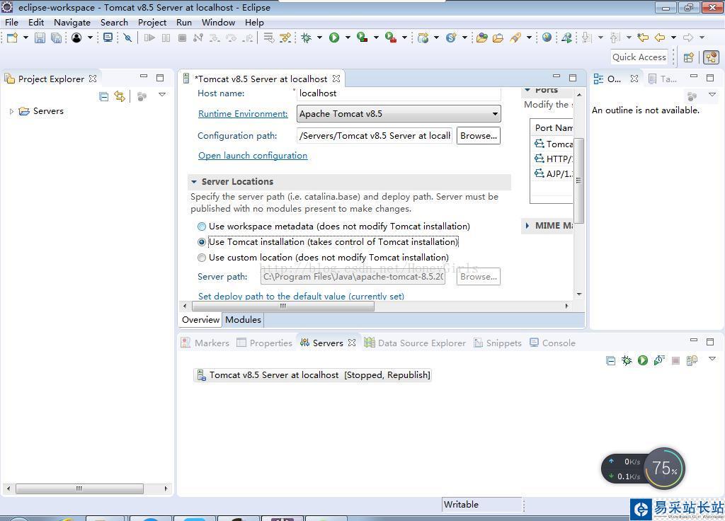 g) 雙擊Tomecat v8.5 Servers at localhost