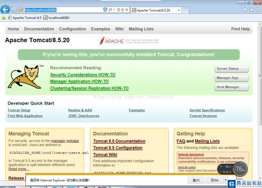 j) 打開IE,地址欄填寫http://localhost:8080/