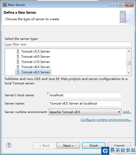 這時我們選擇Tomcat v8.5 Server后選擇Next按鈕