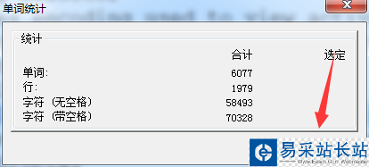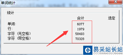 4、這樣就會彈出了一個單詞統計的窗口,顯示了單詞,行,字符的相關的數據。
