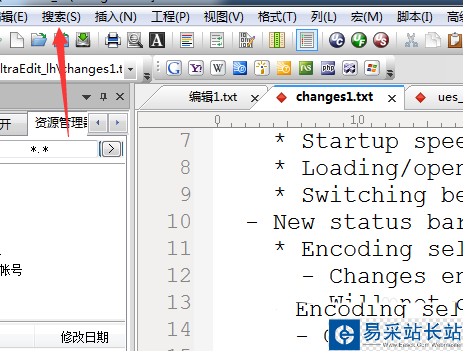 2、然后進行點擊了UltraEdit的菜單中的搜索的菜單。