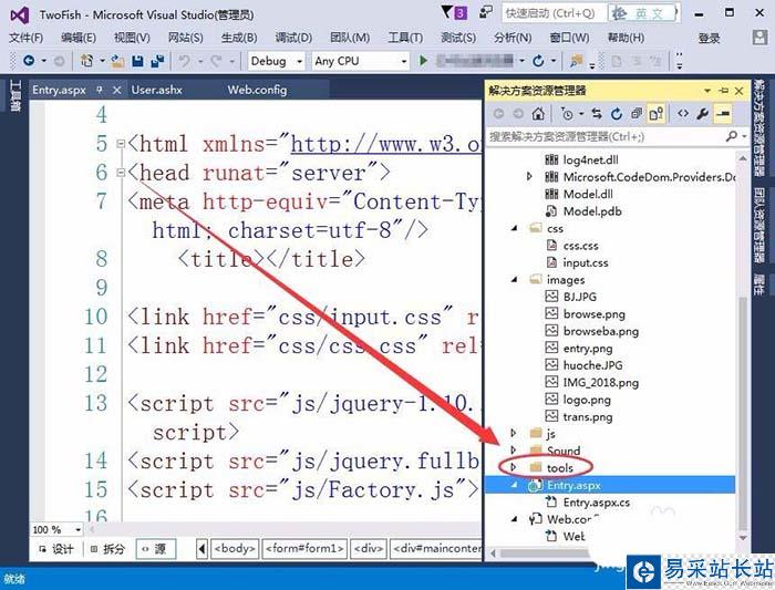 6、可以看到,在tools文件夾中,多了一個User.ashx文件,用戶文件就添加好了。