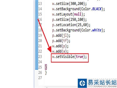 6、第六然后就到窗口顯示最重要的時刻。輸入代碼為a.setVisible(ture);。其中的ture就是使窗口可視化。就是現在運行代碼的話,窗口就可以看見了。