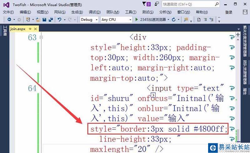 11、設置輸入文本框的邊框為3像素,顏色為藍色。