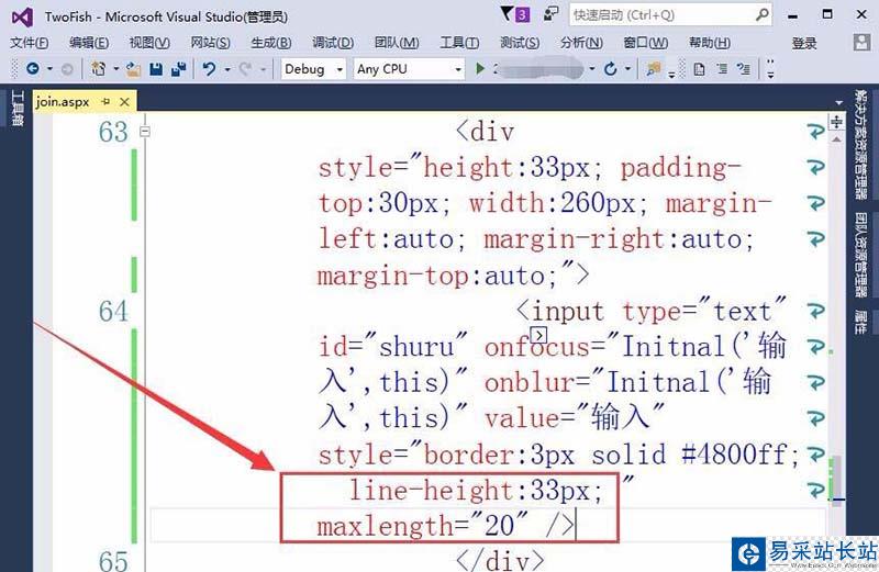 12、最后,設置輸入文本框的行高,以及能輸入的最多字符數。
