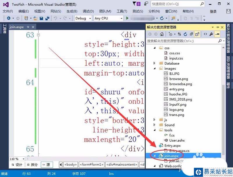 1、用Visual studio軟件打開一個已有的網頁,本例為join.aspx。