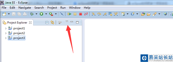 2、在Package Explorer中右側可以看到倒三角的一個圖標,并點擊三角圖標