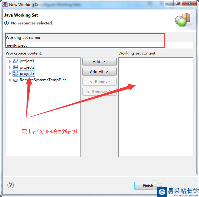 6、彈出窗口中點擊new按鈕設置新的文件夾,彈出窗口設置新的文件夾名稱和需要添加的項目到文件夾中,添加完成項目點擊finish