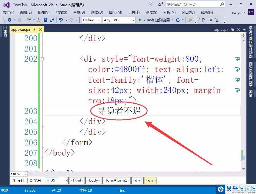 9、不要忘了在div標簽中插入文本,本例為尋隱者不遇。