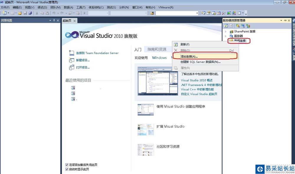 2、找到服務(wù)器資源管理器里的【數(shù)據(jù)連接】,右鍵點(diǎn)擊【數(shù)據(jù)連接】在彈出的框里點(diǎn)擊【添加連接】,如下圖所示: