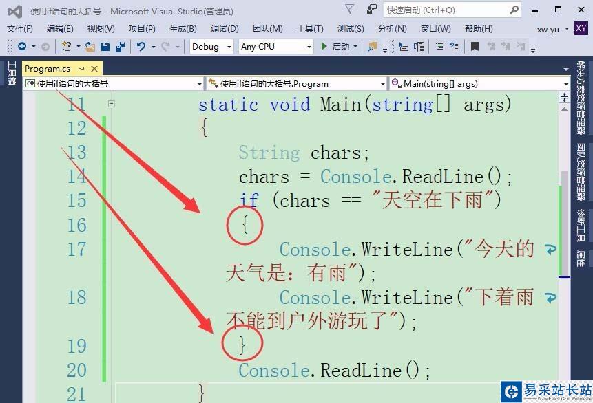 Visual Studio使用if語句判斷條件,默認(rèn)只能執(zhí)行一條語句,如果要執(zhí)行多條語句則需加上大括號,該怎么使用大括號呢?下面我們就來看看詳細(xì)的教程。