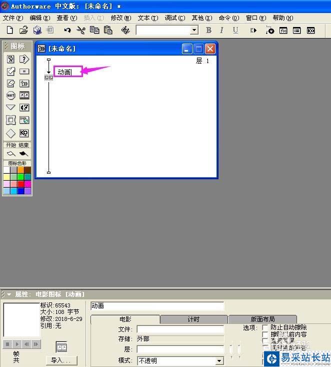 4、為了增加程序的可讀性,我們養(yǎng)成好習(xí)慣,給新添加的圖標(biāo)命名,我們命名為動(dòng)畫(huà);