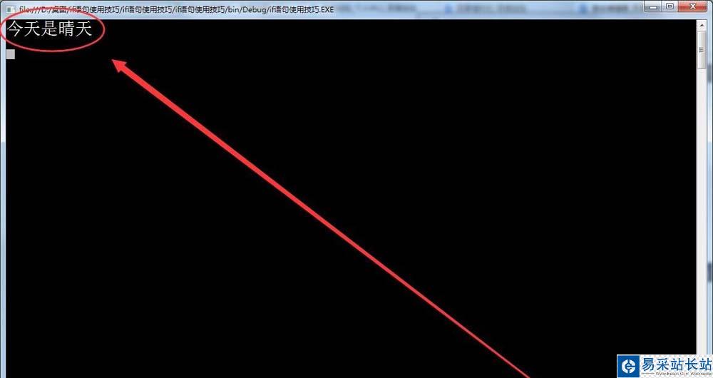 5、如果條件成立,則在窗口中輸出今天是晴天。