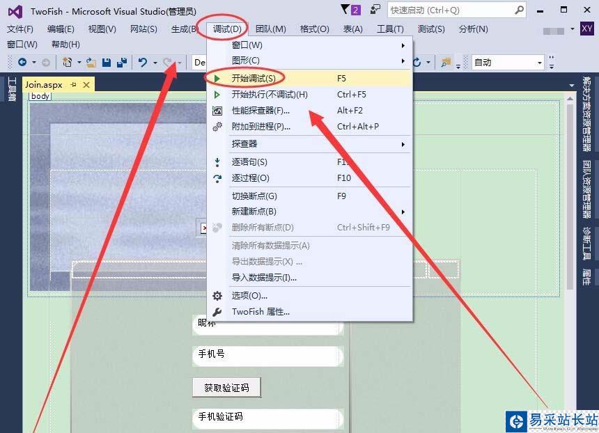 方法一:?jiǎn)螕粽{(diào)試菜單,選擇開始調(diào)試按鈕。