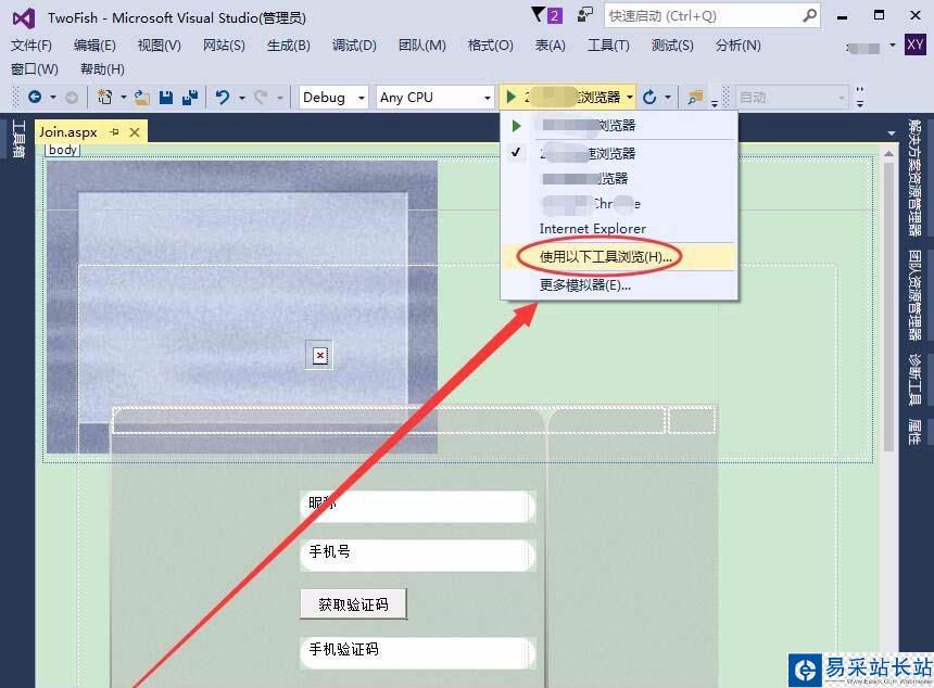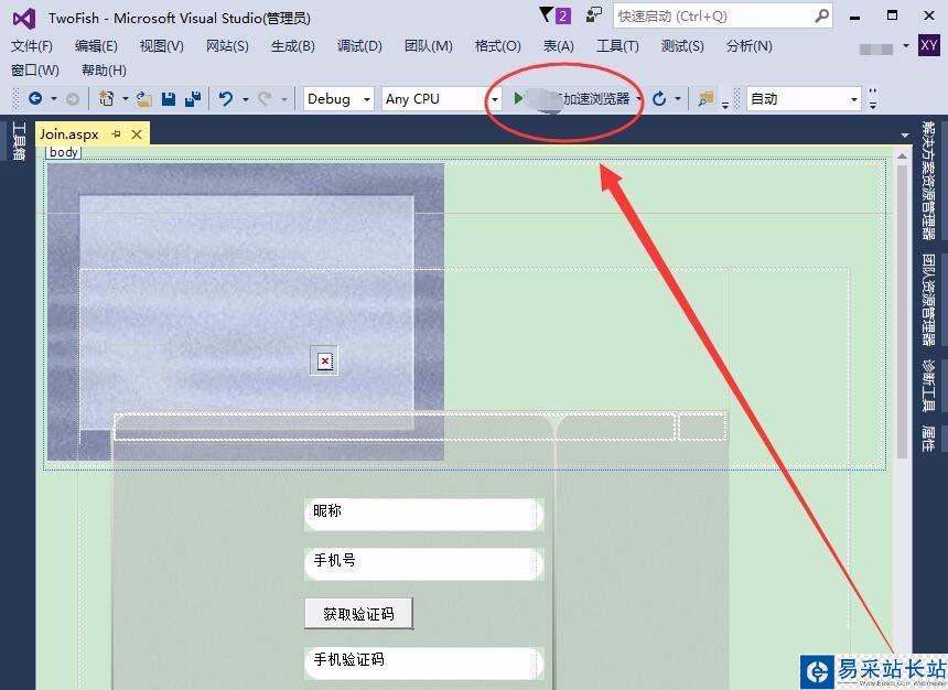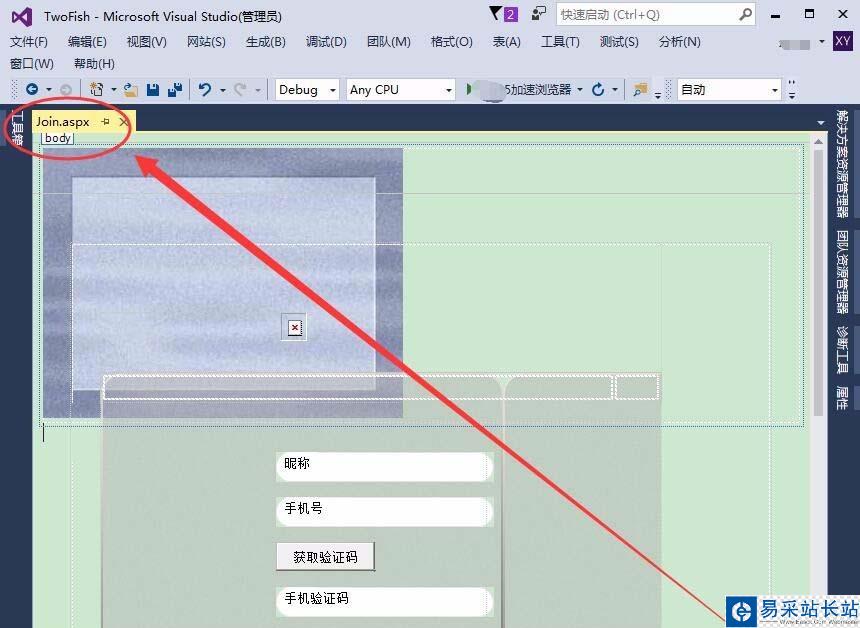 打開Visual Studio,制作一個(gè)網(wǎng)頁,本例為Join.aspx頁面。
