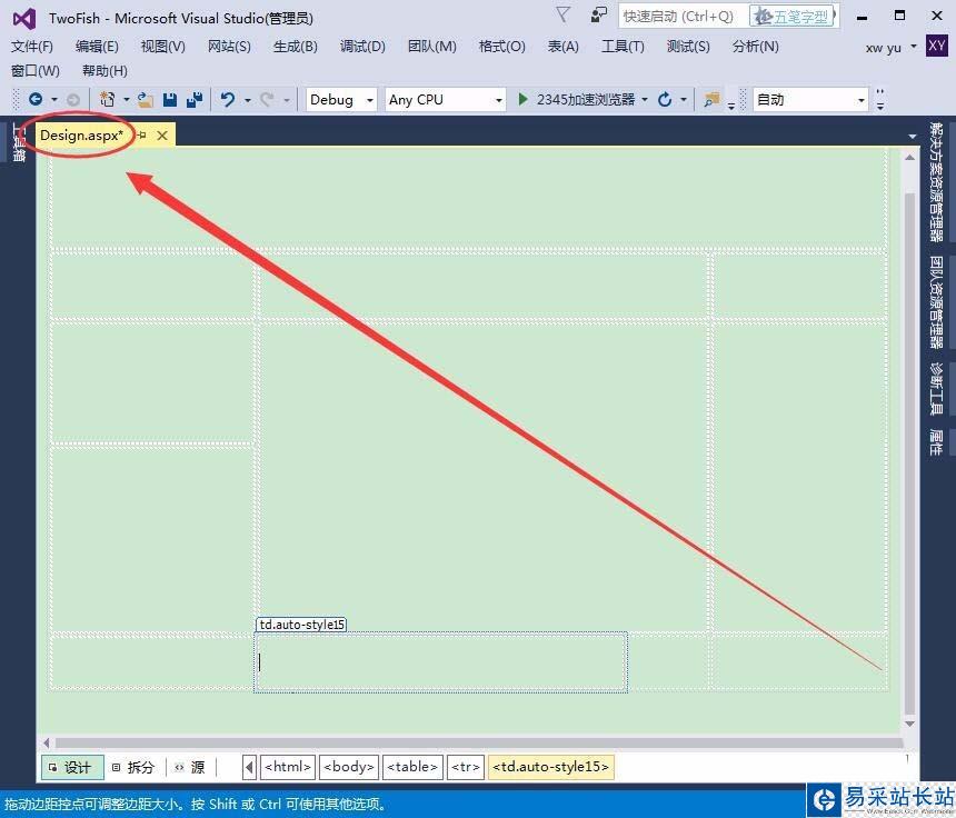 1、首先,使用Visual Studio打開一個已有的網頁。