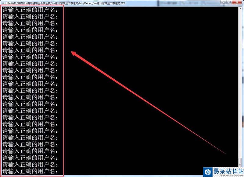 8、運(yùn)行程序,在窗體中始終輸出請(qǐng)輸入正確的用戶名,達(dá)到循環(huán)輸入數(shù)據(jù)的效果。