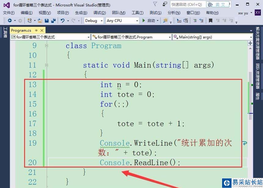 3、接著,在Visual Studio中編寫一個(gè)統(tǒng)計(jì)累加次數(shù)的程序。