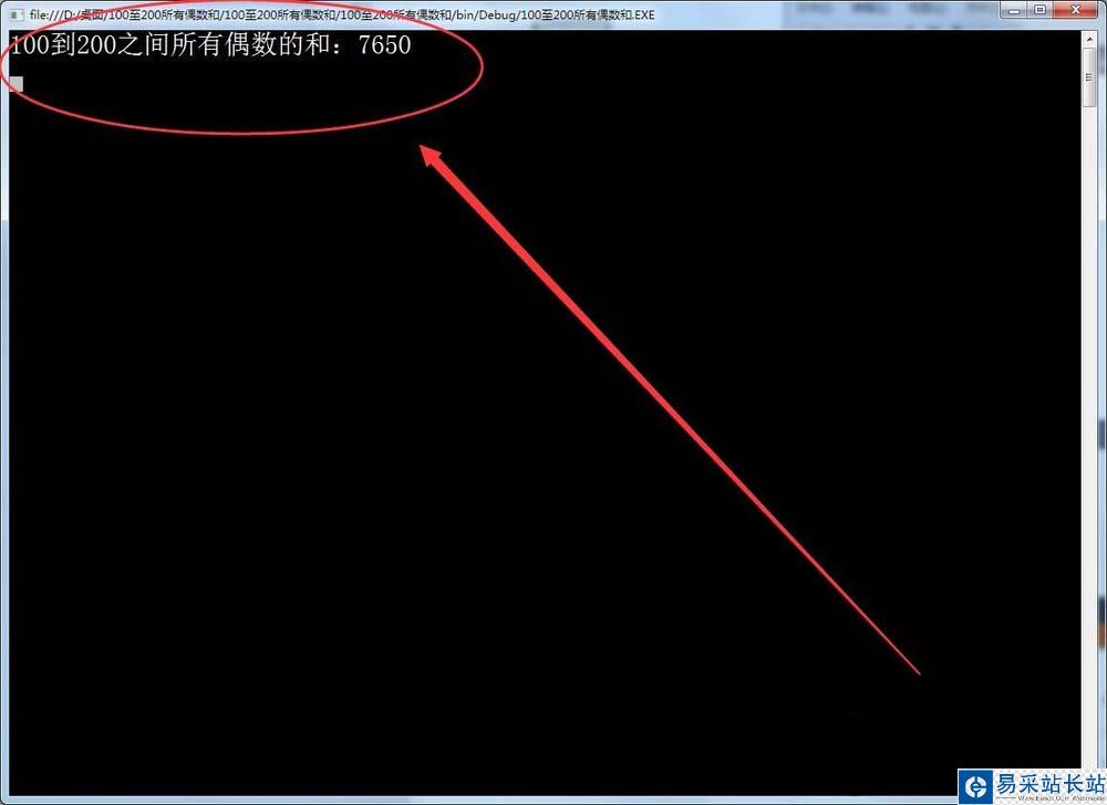 6、計算出100至200的所有偶數和后,在窗口中輸出總數。