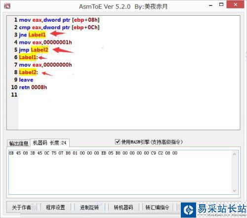 4、反匯編的時候可以自動識別 跳轉(zhuǎn)標識符,這樣就方便看 跳轉(zhuǎn)跳到了哪里,當然,寫匯編的時候也支持跳轉(zhuǎn)標識符