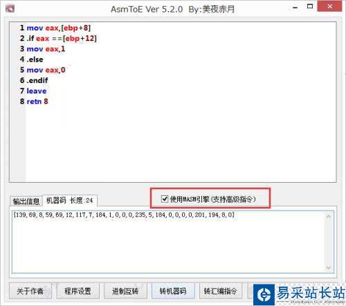 3、支持if 等的高級偽指令,不過得開啟MASM引擎