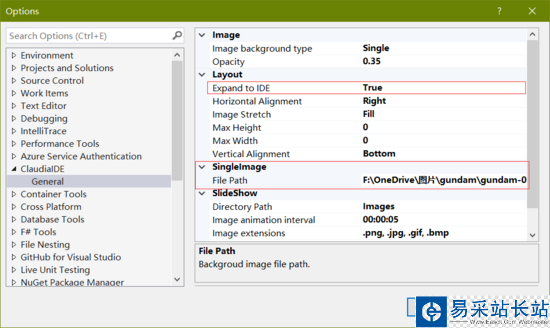 主要設(shè)置兩個屬性,F(xiàn)ile Path 為背景圖片路徑,Expand to IED 設(shè)置為 True。然后看一下效果,發(fā)現(xiàn)很難看,別急,還有一一步設(shè)置: