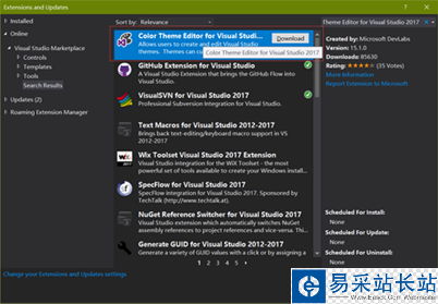首先,我們在擴展程序列表搜索“Color Theme Editor for Visual Studio 2017 ”,并安裝: