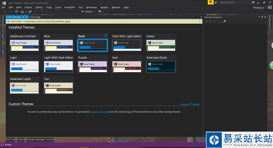 安裝完成以后,重新進入VS便會看到這個界面,如果關(guān)閉了可以通過 【工具】->【 Customsize Colors】 重新進入: