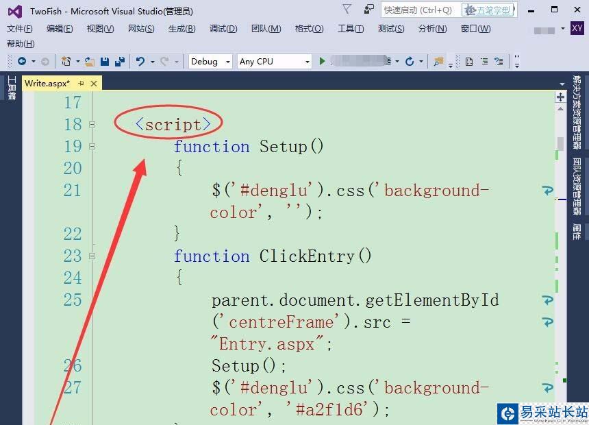 1、首先,判斷代碼是書寫在<script>標簽內。