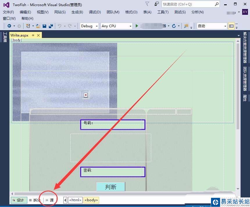 網頁界面中,選擇源選項,打開網頁代碼頁面。