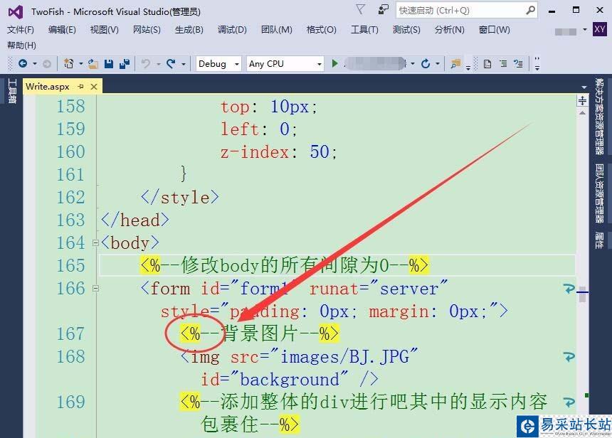 1、如果代碼在body區內,先在需要添加注釋的前方輸入<%--。